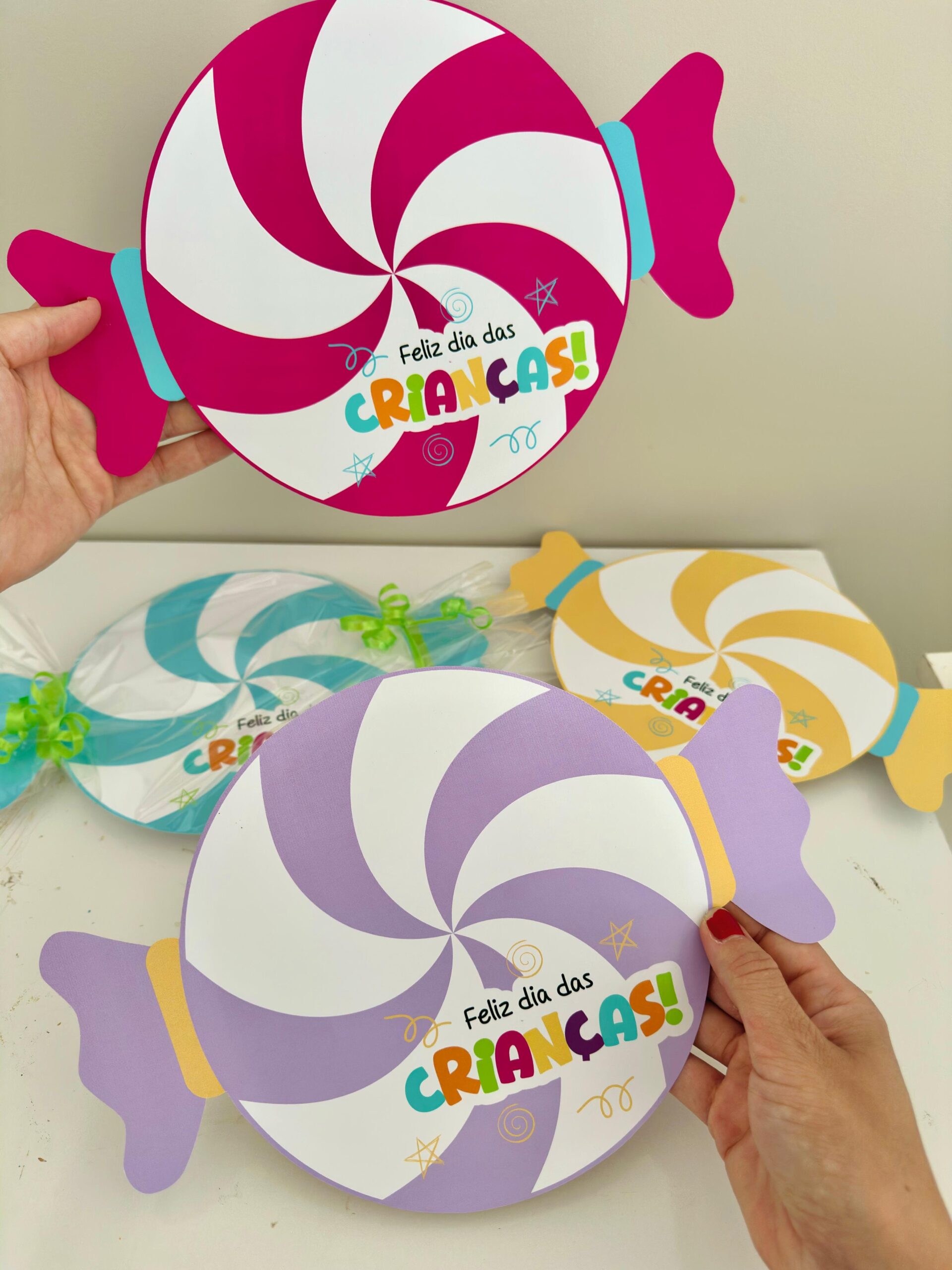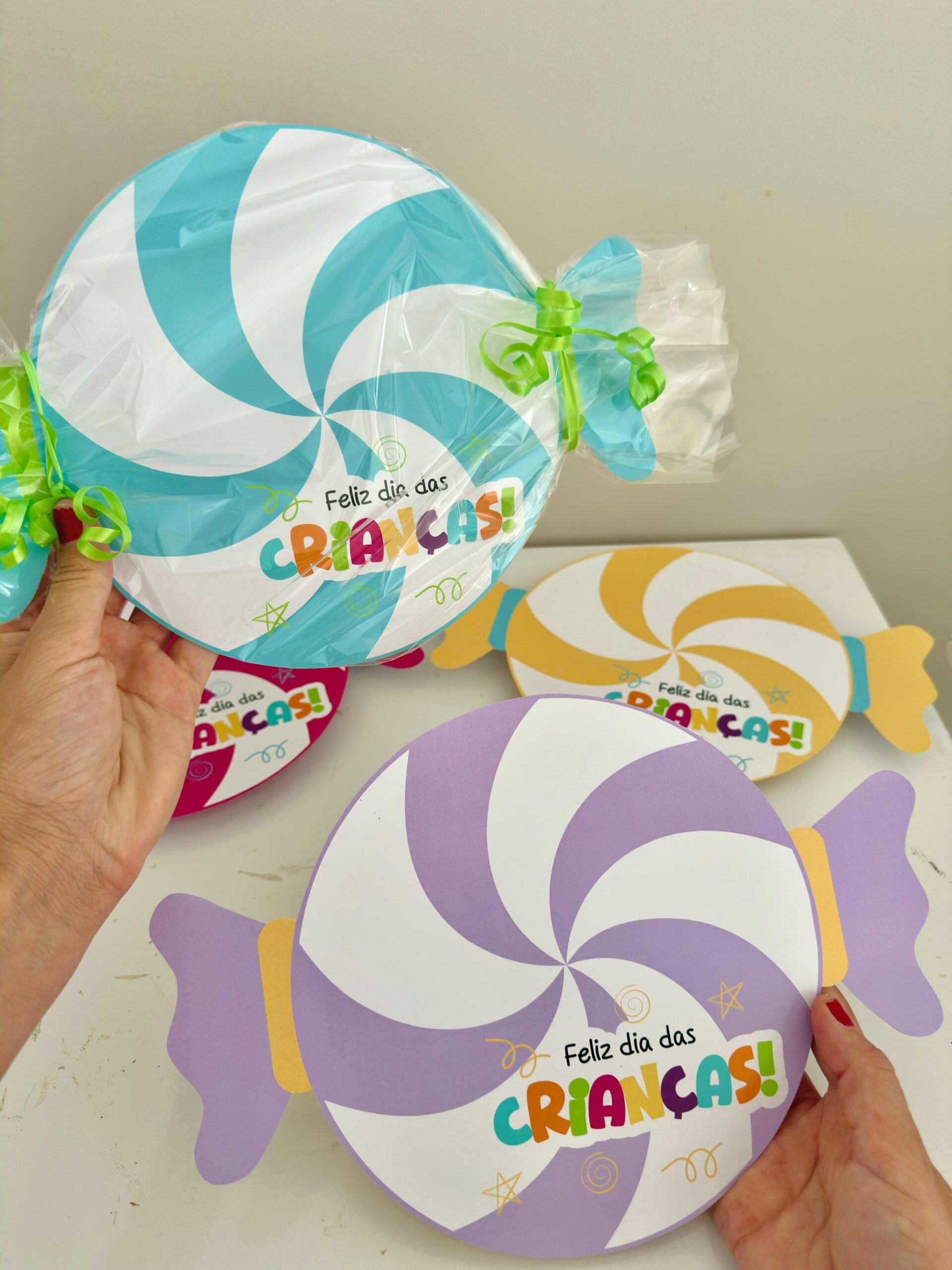 Receba 1 arquivo contendo: 4 balinhas coloridas no tamanho de 1 folha A4.