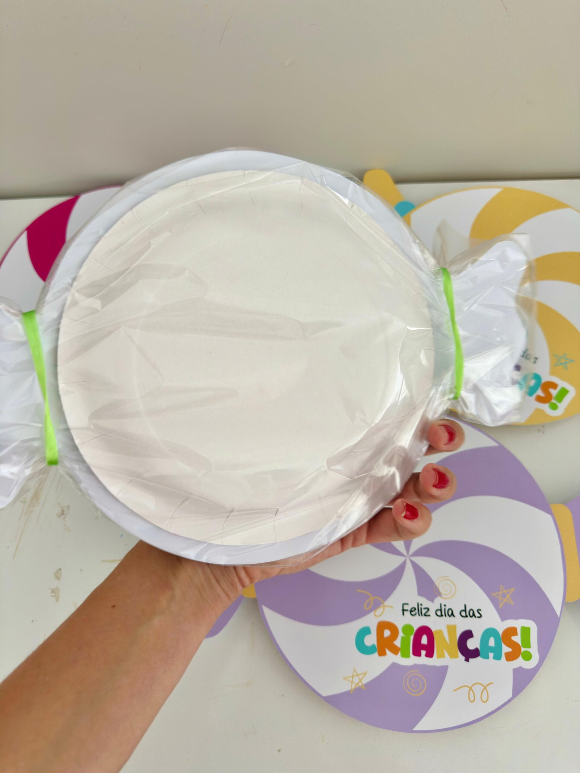 Utilizei pratinho de papelão para bolo.