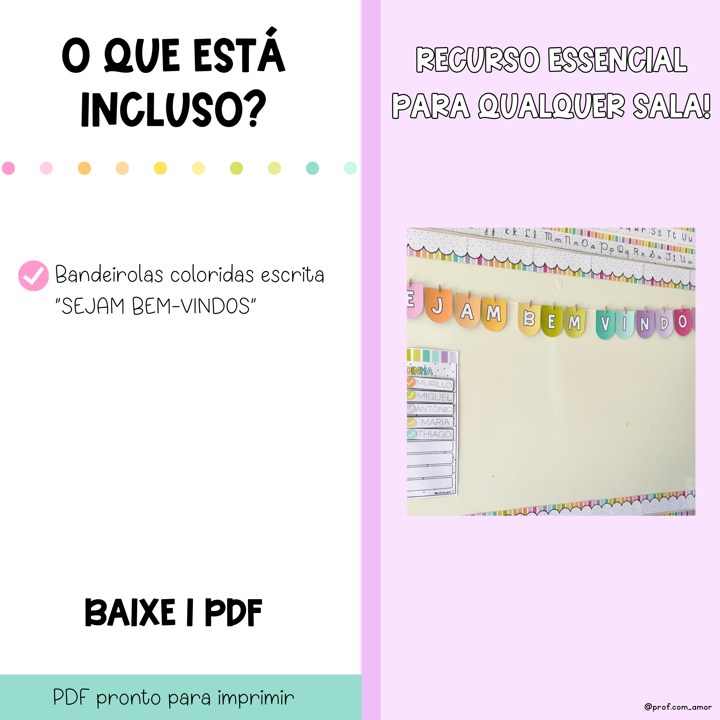 Recurso decorativo e acolhedor para receber a turma e criar um ambiente afetivo desde o primeiro dia.