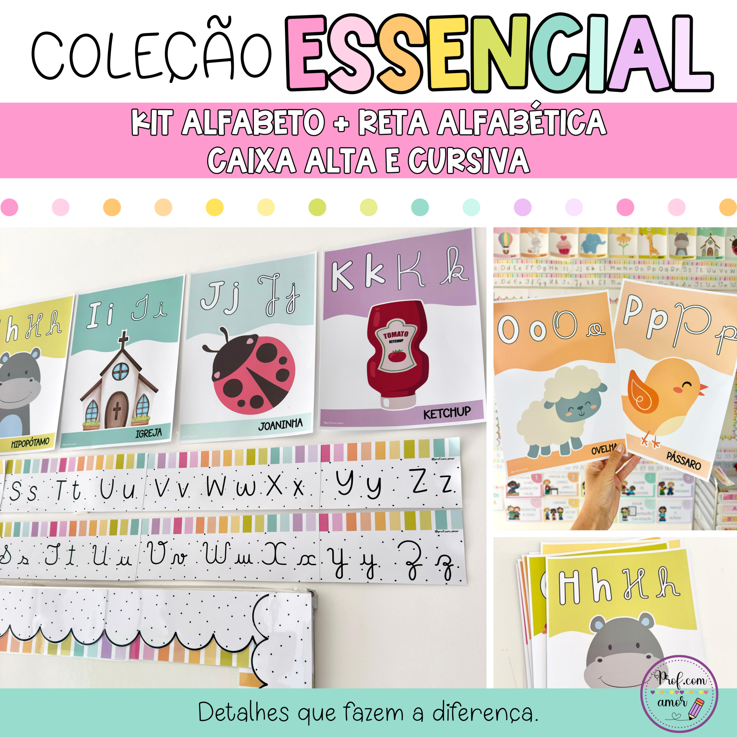 Este material reúne dois recursos essenciais para o trabalho com letras na Alfabetização: o alfabeto ilustrado e a reta alfabética, ambos em caixa alta e cursivo. Pensado para o uso diário em sala de aula, ele oferece apoio visual às crianças que estão iniciando o contato com as letras, auxiliando no reconhecimento, na identificação e na memorização da sequência alfabética.