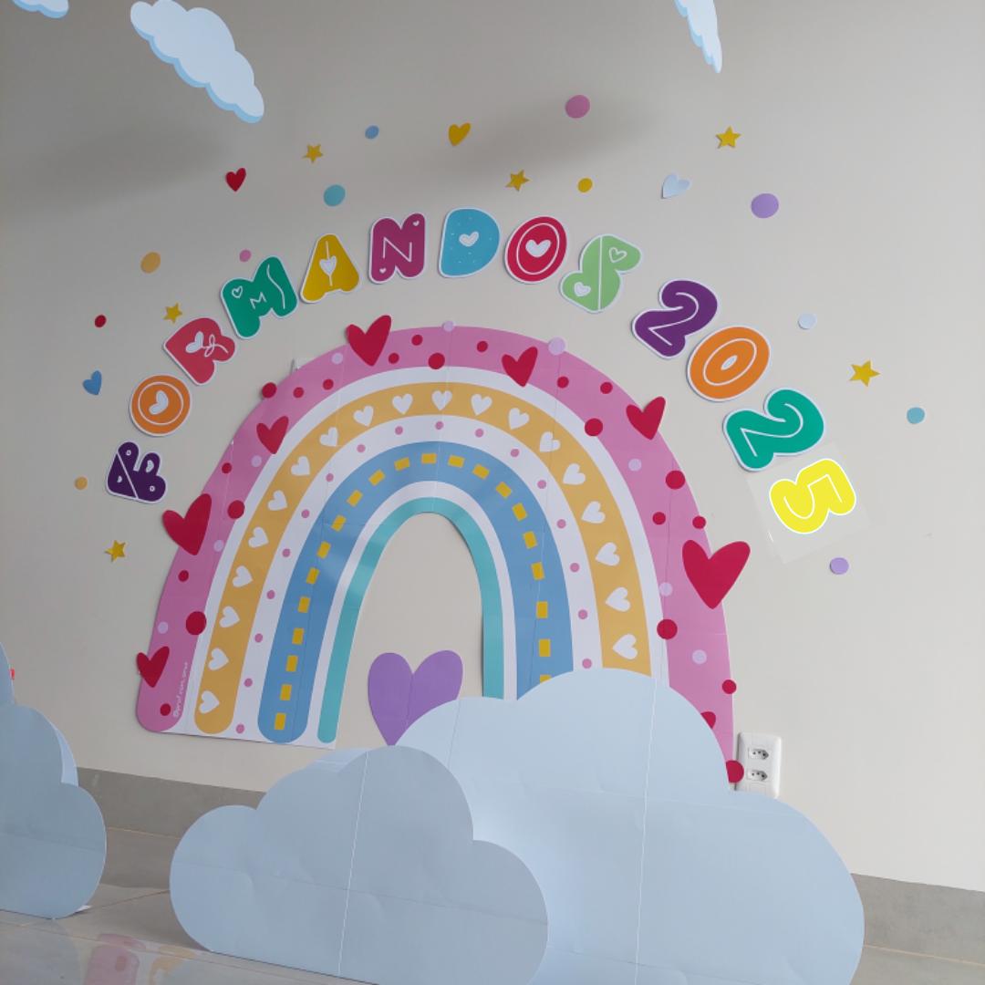 Aposte neste painel lindo de arco-íris para deixar o momento de formatura ainda mais inesquecível.