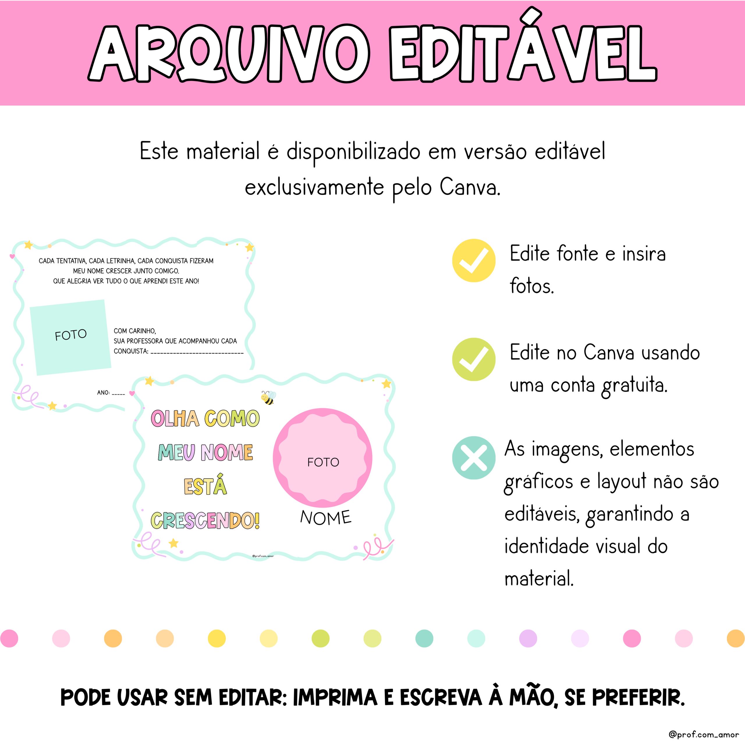 • Arquivo editável apenas para inserir foto e nome da criança (não pode ser personalizado ou alterado).